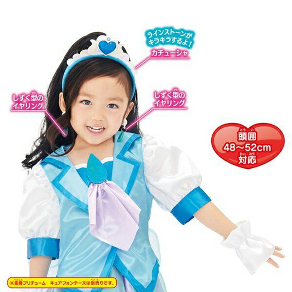 対象サイズ:頭囲48〜52cm [セット内容] ・カチューシャ…1個 ・しずく型のイヤリング…2個 ※変身プリチューム キュアフォンテーヌ(ドレス)は別売りです。