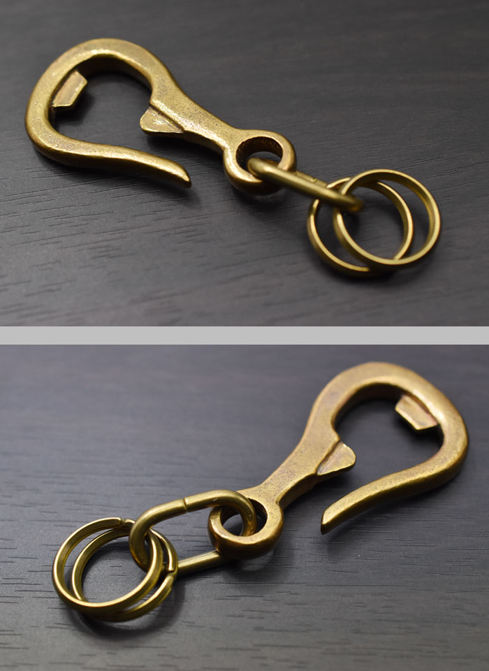 【スーパーセール最大40%OFF&クーポン】【NEW DESIGN!!】≪真鍮製 ブラス ボトルオープナー モチーフ/ショートタイプ キーフック ワイルドブラス 2重リング付き キーホルダー ブラスキーフック≫/真鍮/真鍮製/ブラス/釣り針型キーホルダー/工具/真鍮無垢
