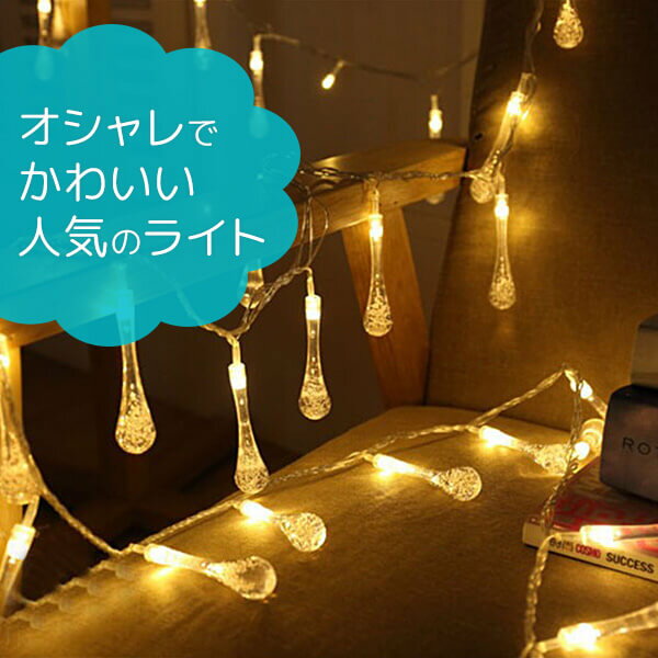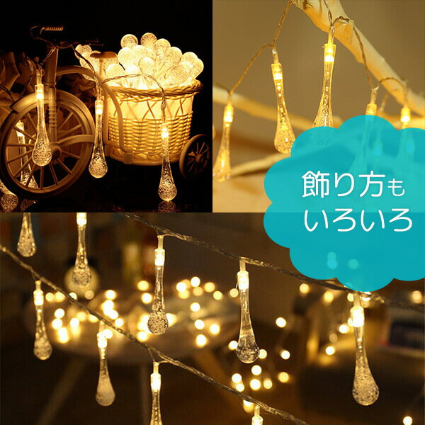 ガーランド ライト 室内用 イルミネーション 水滴タイプ 電池式 20球 3m 電球色 LED クリスマス ストレート ドロップ 電飾 ライト 飾り付け 装飾 部屋 ツリー オーナメント 玄関 エントランス ハロウィン キャンプ 結婚式 おしゃれ