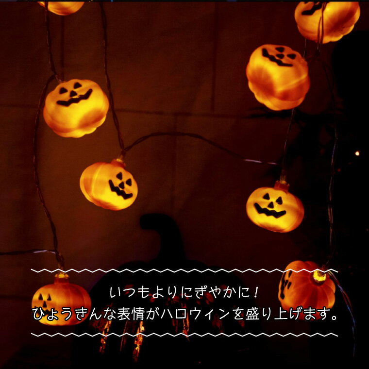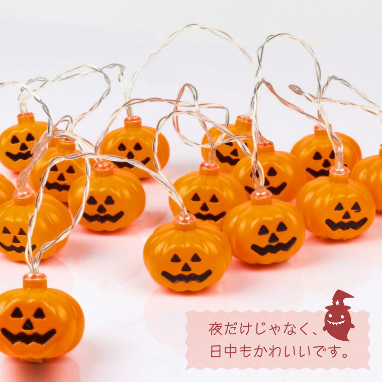 ガーランド ライト 室内用 イルミネーション カボチャ 電池式 20球 3m 電球色 LED クリスマス ストレート かぼちゃ パンプキン 電飾 ライト 飾り付け 装飾 部屋 ツリー オーナメント 玄関 エントランス ハロウィン キャンプ 結婚式 おしゃれ
